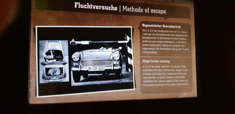 De mensen die wilde vluchten moesten steeds ingewikkeldere manieren. Iemand is met een hele lage auto onder de slagboom door gereden. Mensen hebbenl lange tunnels gegraven of verstopten zich tussen spullen in vrachtauto's. Hieronder een paar foto's uit het DDR museum hoe mensen vluchtte.